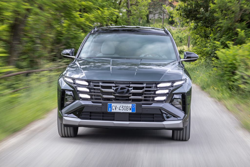 Sous le capot, le Tucson fait appel à une chaîne de traction hybride qui allie un bloc thermique 1.6 T-GDi de 180 ch et un moteur électrique de 60 ch, pour une puissance cumulée de 230 ch. Résultat : une consommation mixte limitée à 4,9 l/100 km, preuve que performances et sobriété peuvent cohabiter.