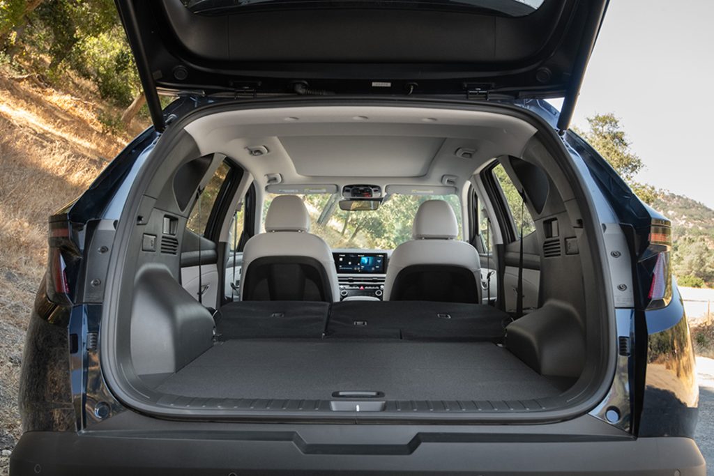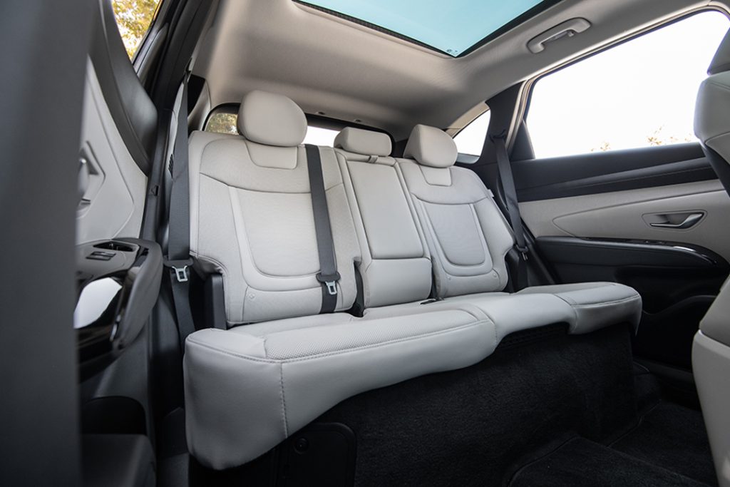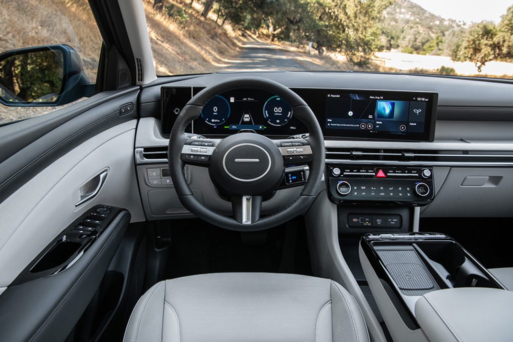 À l’intérieur, le Tucson Hybrid soigne son atmosphère avec une planche de bord épurée et une instrumentation 100 % digitale, qui crée une ambiance high-tech sans renoncer à l’ergonomie. Par ailleurs, la vocation familiale de ce modèle se confirme par un coffre généreux de 503 litres, extensible à 1 682 litres une fois la banquette rabattue. Un volume qui place le Tucson parmi les plus pratiques de sa catégorie.