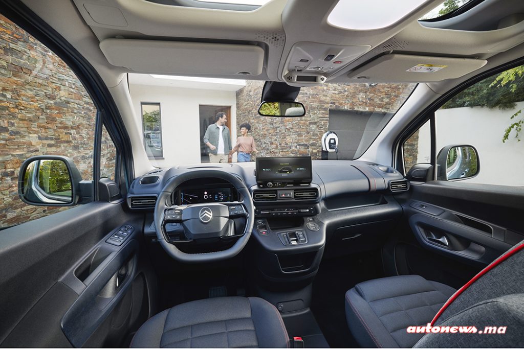 Au sommet de la gamme, on trouve le Berlingo Shine Pack, proposée à 238.900 DH au lieu de 259.900 DH. Cette version haut de gamme met en avant une présentation plus valorisante avec la climatisation automatique bi-zone et la sellerie Urban Grey. L’expérience à bord gagne aussi en ergonomie avec l’écran tactile 10’’ HD, le combiné digital couleur et la caméra de recul Top Rear Vision. Le design extérieur s’affirme avec les vitres et la lunette arrière surteintées, les barres de toit, les coques de rétroviseurs noir brillant et, surtout, les jantes en aluminium de 16 pouces.